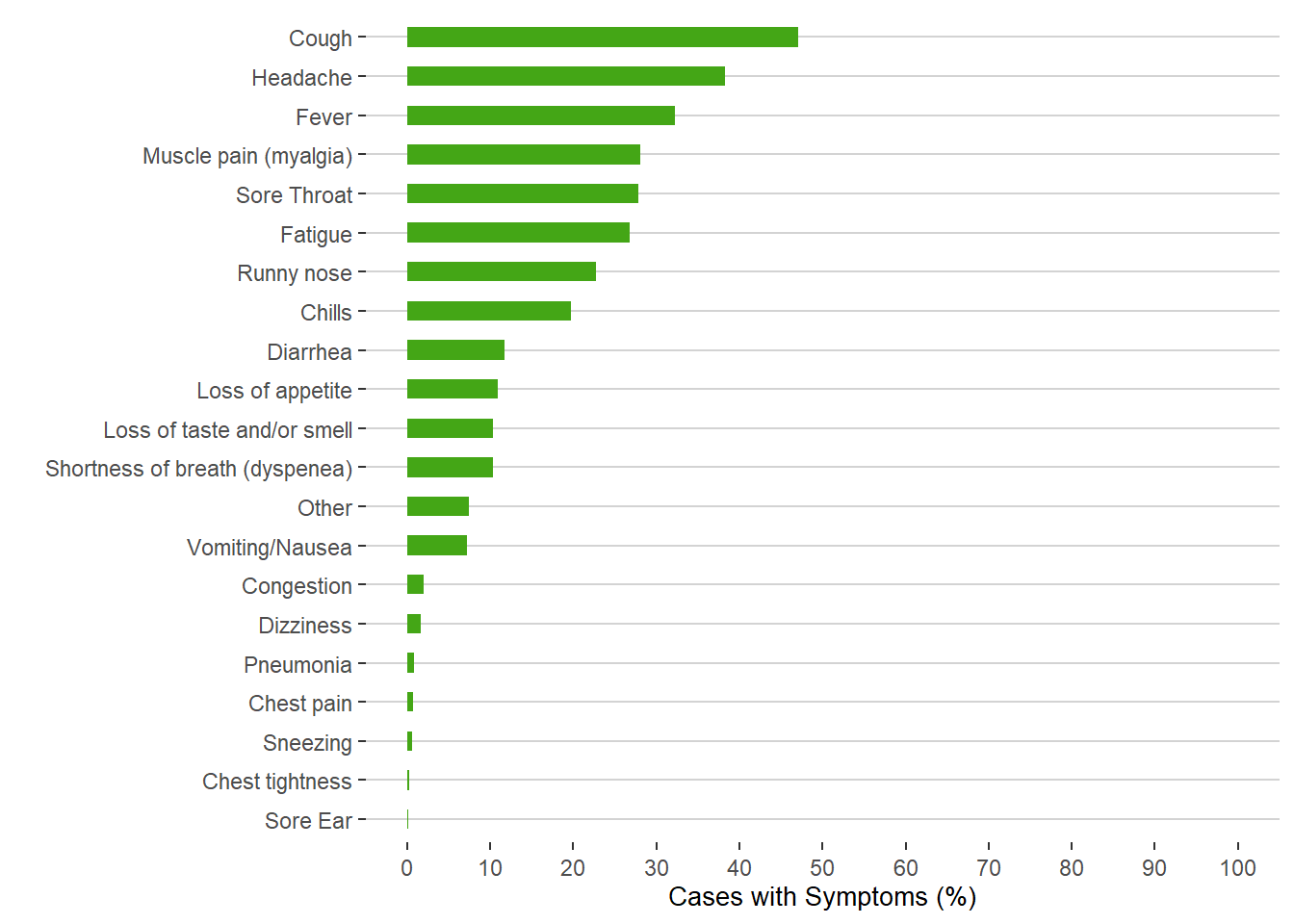 Note: Other symptoms include those less common symptoms such as sweating, runny eyes, itchy throat, etc.