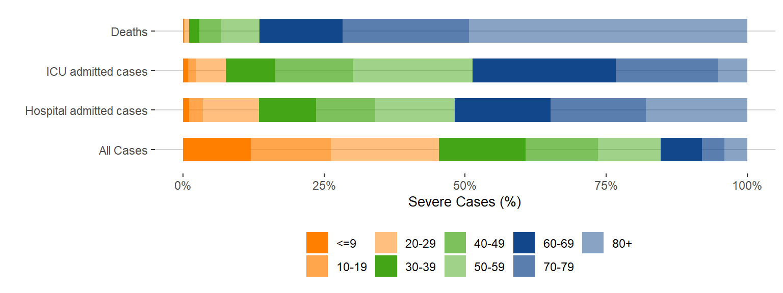 Figure 8. Age Distribution of Severe COVID-19 Cases Compared to All Cases, Manitoba, March 13, 2020 – November 27, 2021
