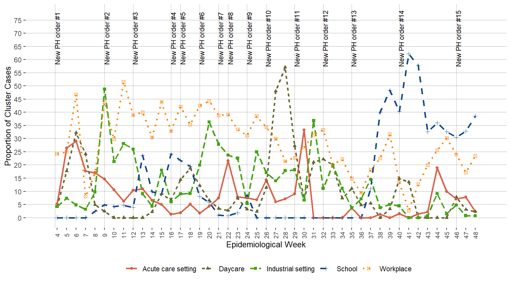 4. The top five settings where cases are found to be linked with an outbreak or cluster or special investigation.