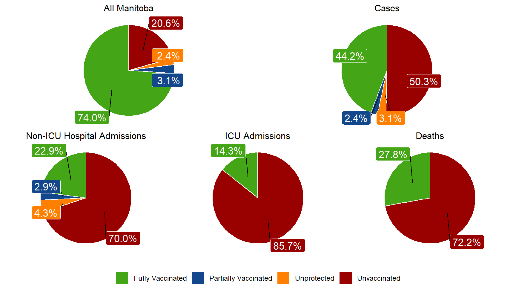 In all Manitoba residents, 77.1% of residents have been partially vaccinated and 74.0% have been fully vaccinated.