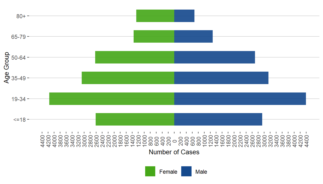 Figure 2. Cases of COVID-19 by Sex and Age Group, Manitoba, 2020 – 2021