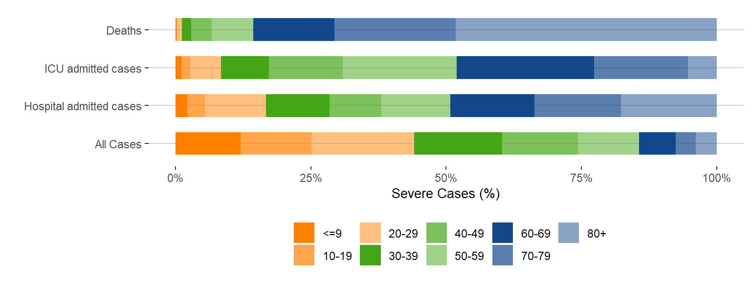 Figure 9. Age Distribution of Severe COVID-19 Cases Compared to All Cases, Manitoba, March 13, 2020 – March 26, 2022