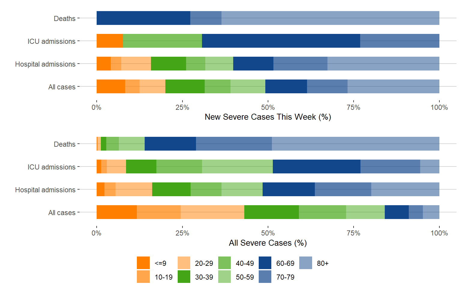 Age distribution of new severe outcomes (.csv)