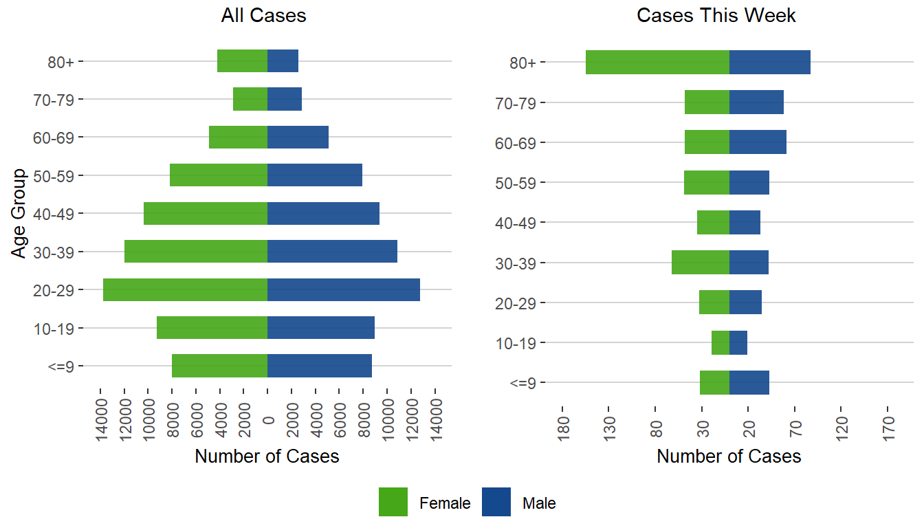Figure 2. Sex and Age Distribution of COVID-19 Cases, Manitoba, March 1, 2020 – May 7, 2022