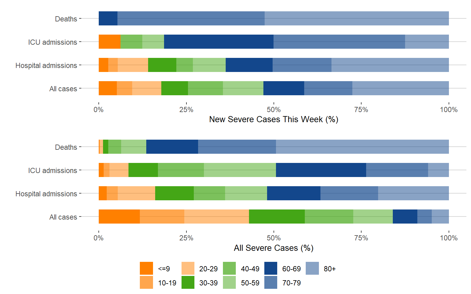 Age distribution of new severe outcomes (.csv)