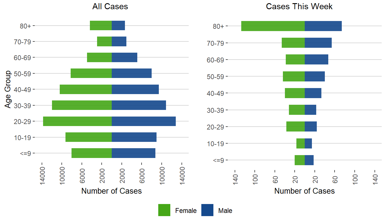 Figure 2. Sex and Age Distribution of COVID-19 Cases, Manitoba, March 1, 2020 – May 14, 2022