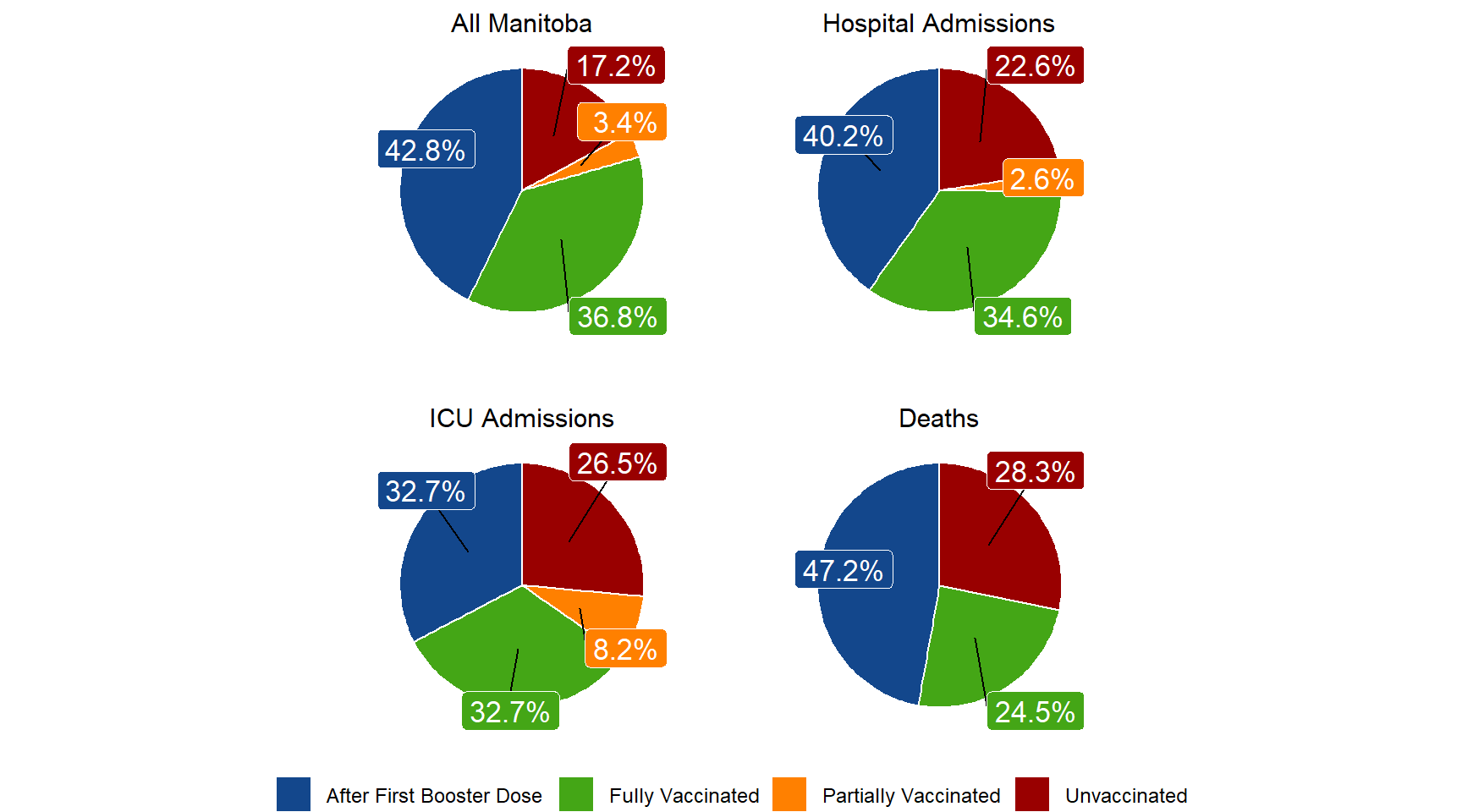 This report provides a current epidemiological update on the intensity and severity of COVID-19 in Manitoba. Surveillance and administrative data include laboratory, hospitalization and mortality data. Data are presented at the provincial and regional level. In this weekly report, we provide regular updates about the current activity of COVID-19 in Manitoba with a focus on severe outcomes (hospital admissions, intensive care unit admissions (ICU), and deaths).