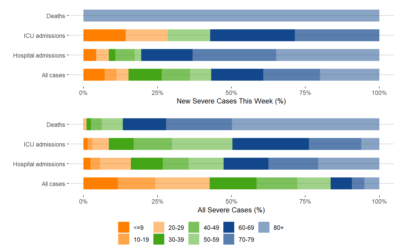 Age distribution of new severe outcomes (.csv)