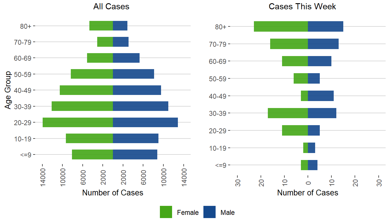 Figure 2. Sex and Age Distribution of COVID-19 Cases, Manitoba, March 1, 2020 – July 16, 2022