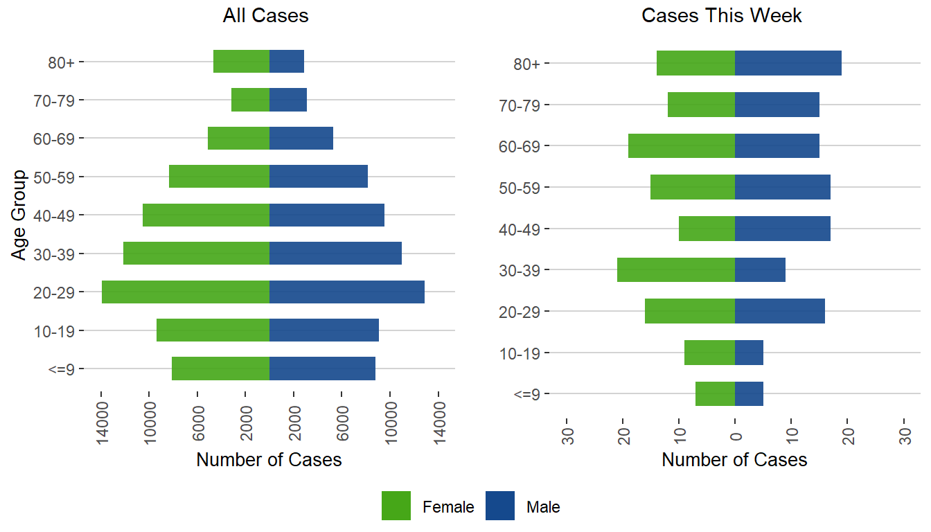Figure 2. Sex and Age Distribution of COVID-19 Cases, Manitoba, March 1, 2020 – July 23, 2022