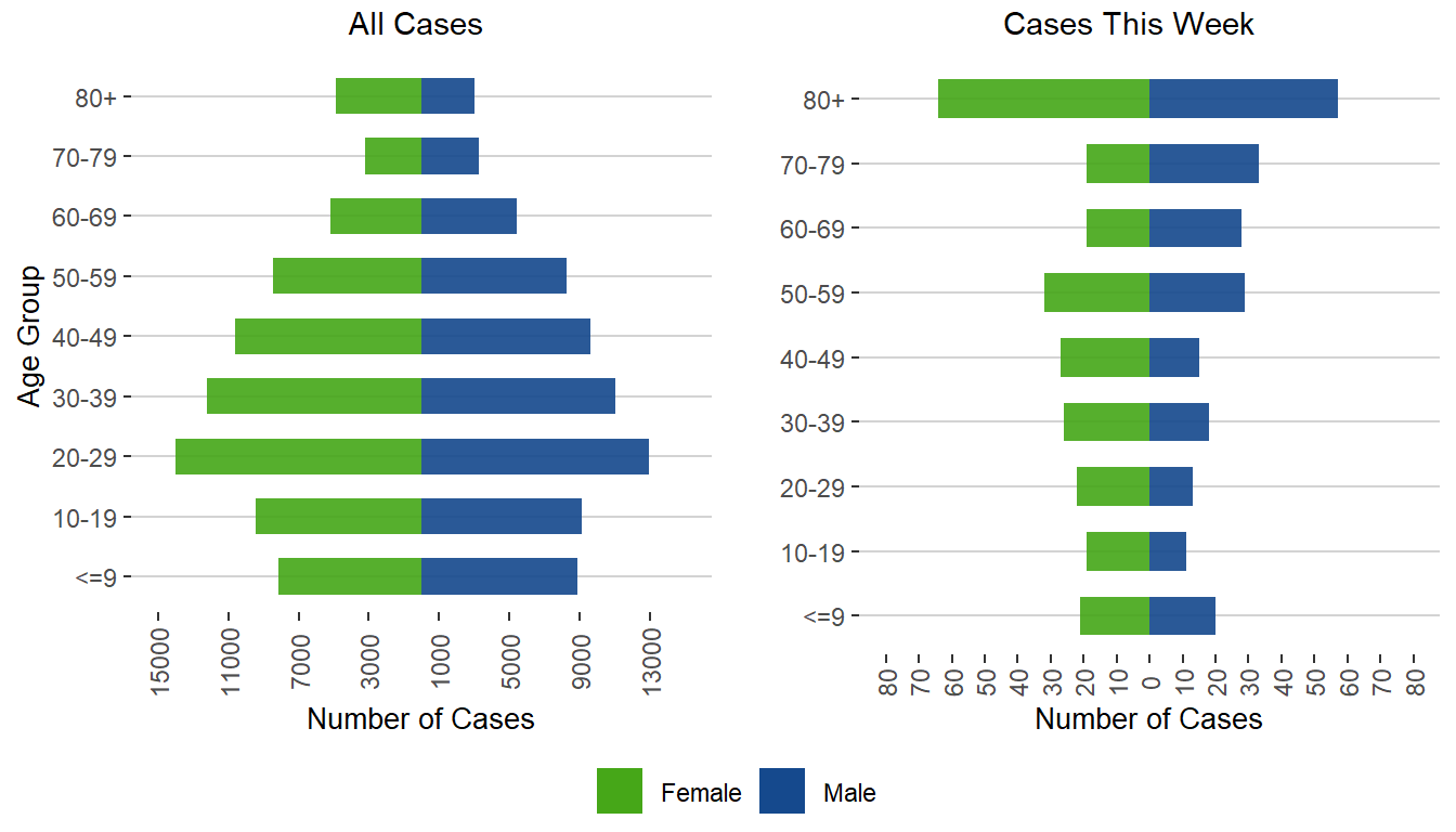 Figure 2. Sex and Age Distribution of COVID-19 Cases, Manitoba, March 1, 2020 – August 20, 2022
