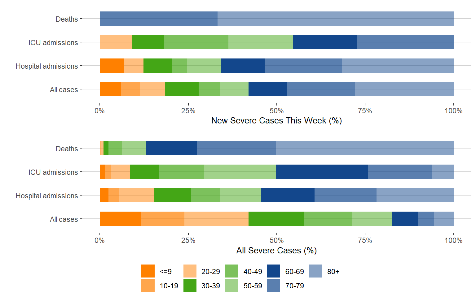 Figure 7. Age Distribution of Severe COVID-19 Cases Compared to All Cases, Manitoba, March 13, 2020 – September 24, 2022