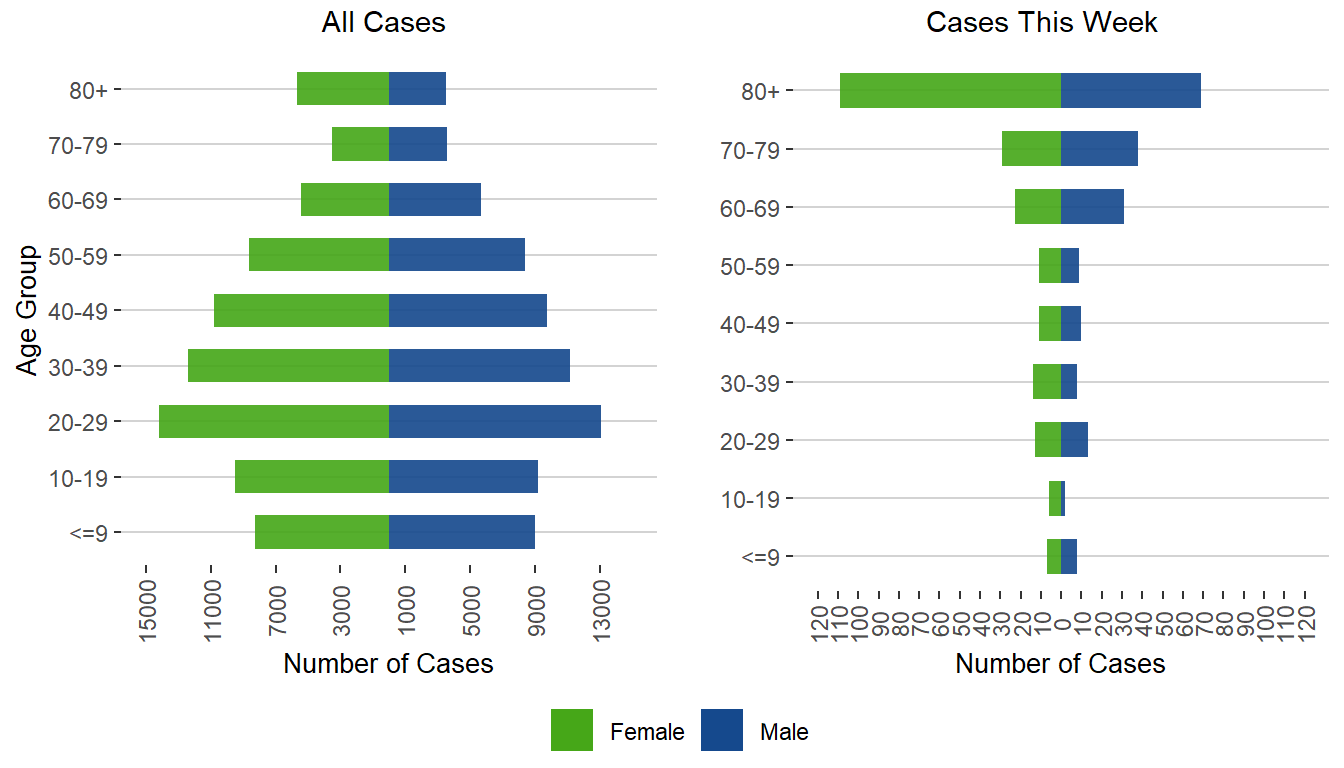 Figure 2. Sex and Age Distribution of COVID-19 Cases, Manitoba, March 1, 2020 – October 29, 2022