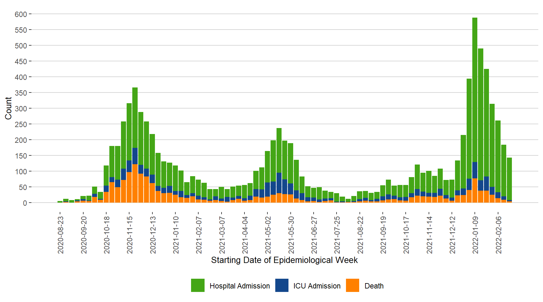 Note: Content is updated monthly from January 2022 onwards. Hospital admissions include ICU admissions.