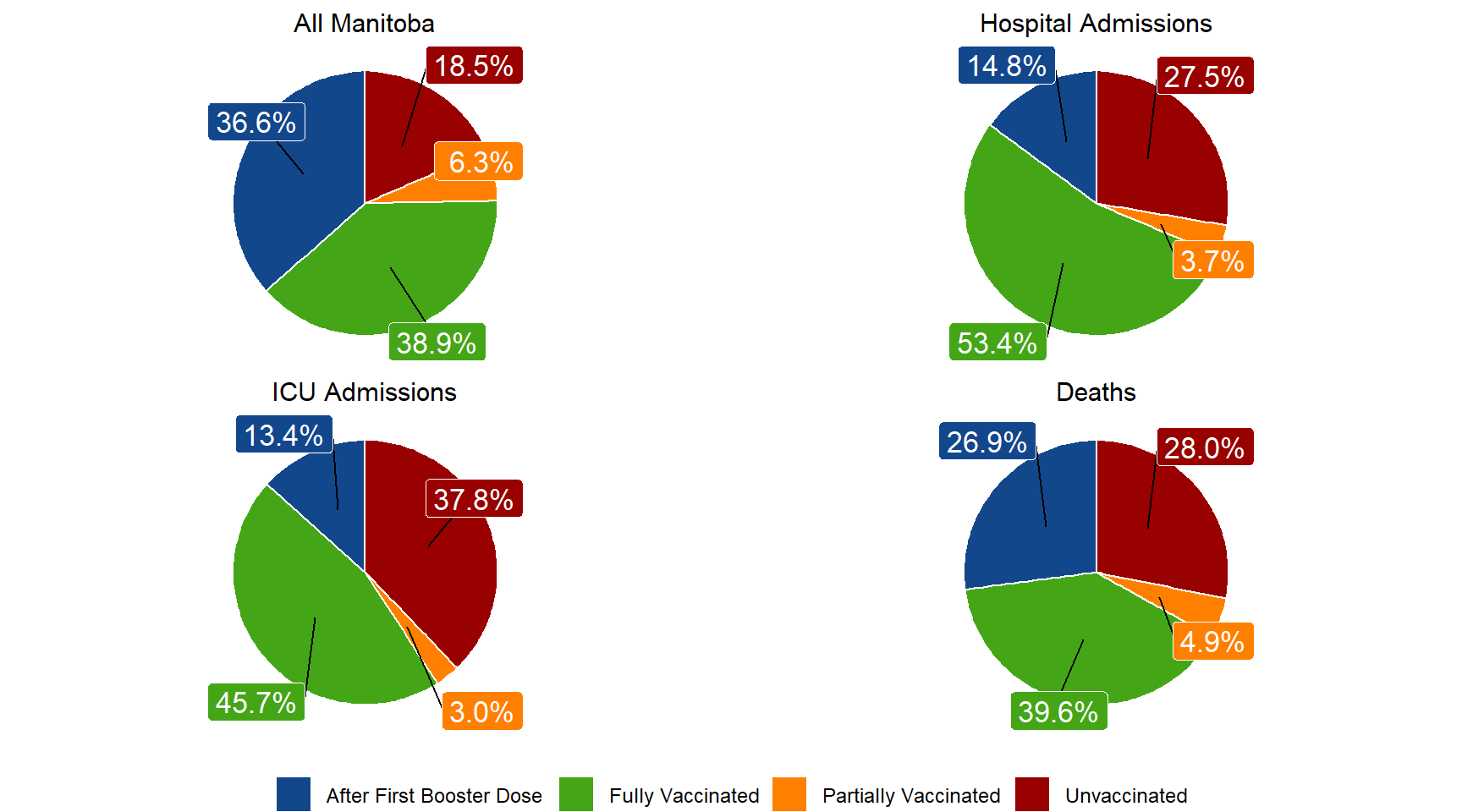 In all Manitoba residents, 81.8% of residents have been partially vaccinated and 75.5% have been fully vaccinated. By January 31st, 36.6% have received one additional dose.