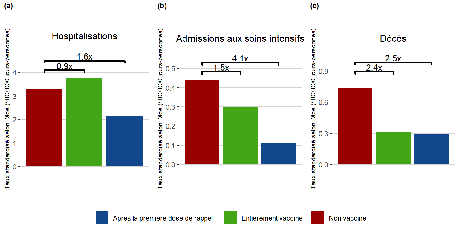 Remarque : Les hospitalisations comprennent les admissions aux soins intensifs. Plus
