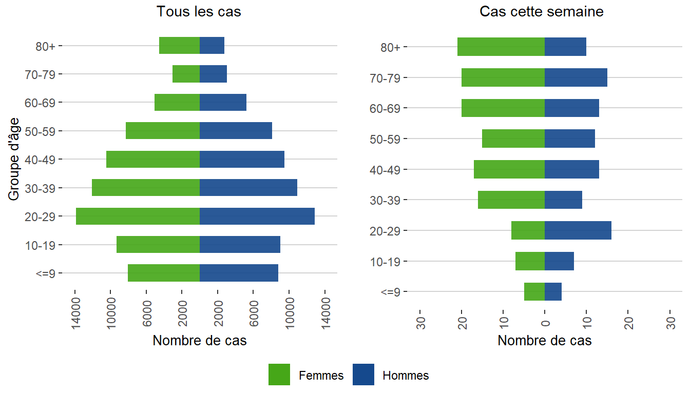 Figure 2. Distributions des cas de COVID-19 par le sexe et l’âge au Manitoba, du 1er mars 2020 au 11 juin 2022