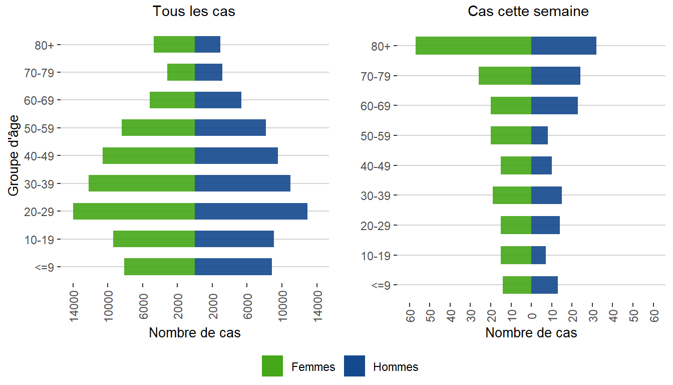 Figure 2. Distributions des cas de COVID-19 par le sexe et l’âge au Manitoba, du 1er mars 2020 au 6 août 2022