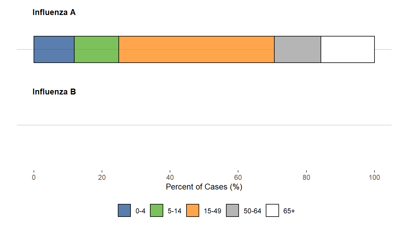 Figure 2. Age Distribution of Laboratory-Confirmed Influenza Cases, Manitoba, September 1, 2021 – May 21, 2022