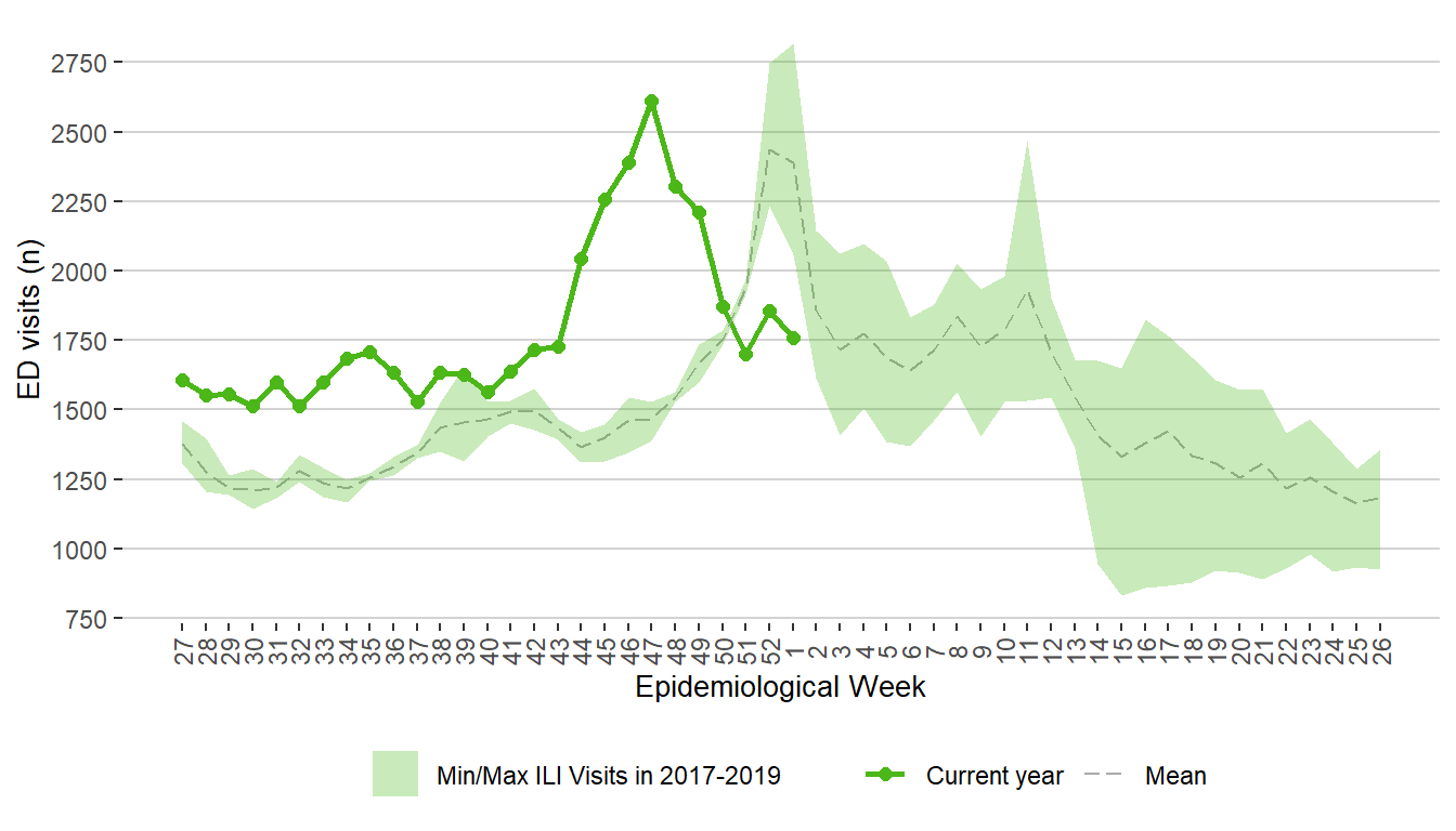 Figure 19. Weekly Respiratory Visits to Emergency Department, Manitoba, 2017 – January 7, 2022