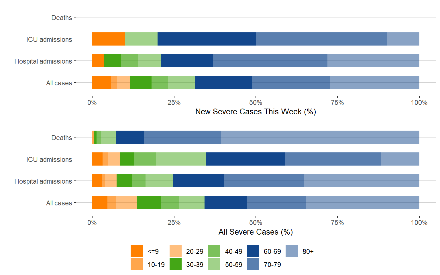 Figure 7. Age Distribution of Severe COVID-19 Cases This Week Compared to All Cases, Manitoba, July 3, 2022 – April 1, 2023
