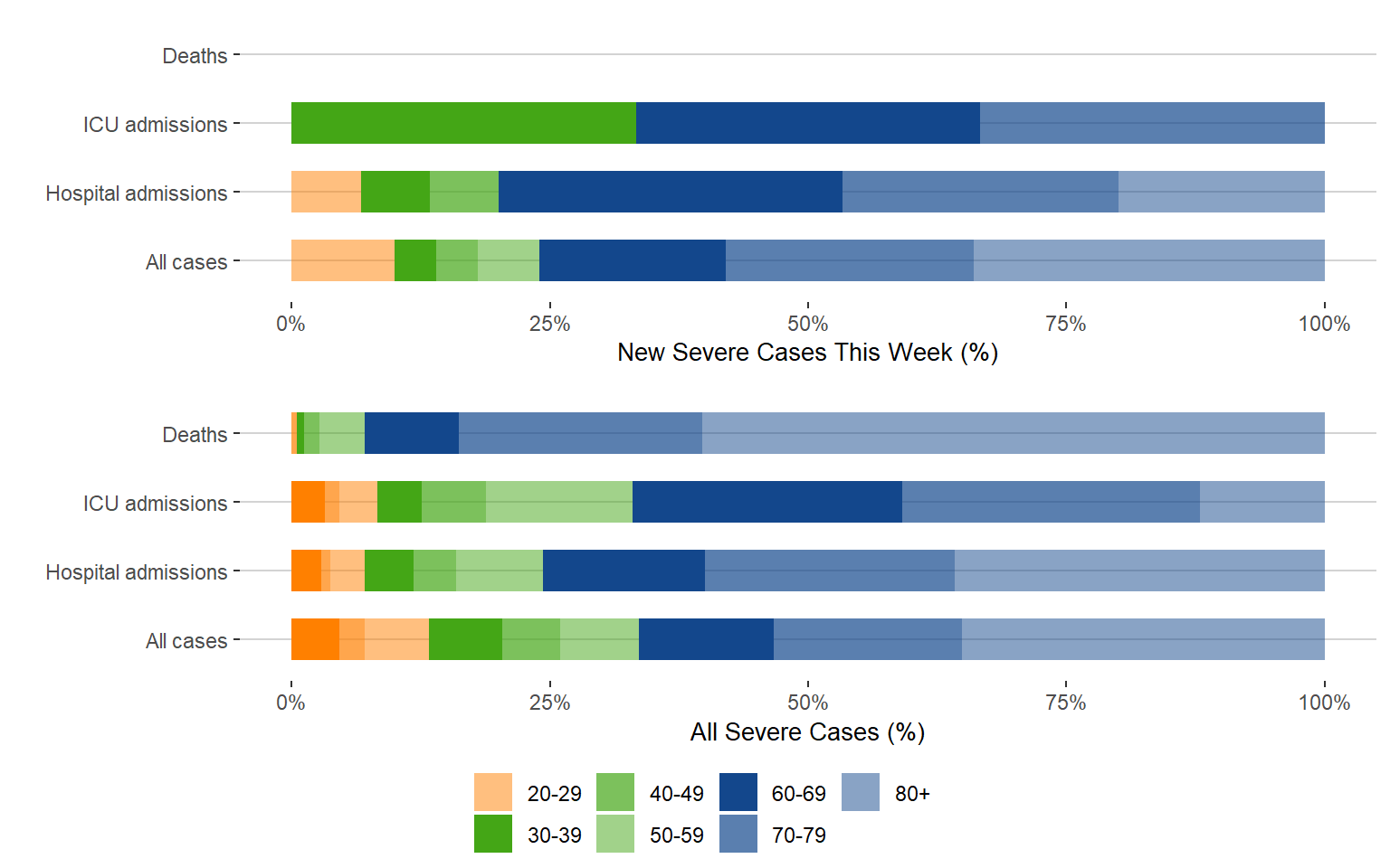 Figure 7. Age Distribution of Severe COVID-19 Cases This Week Compared to All Cases, Manitoba, July 3, 2022 – June 3, 2023