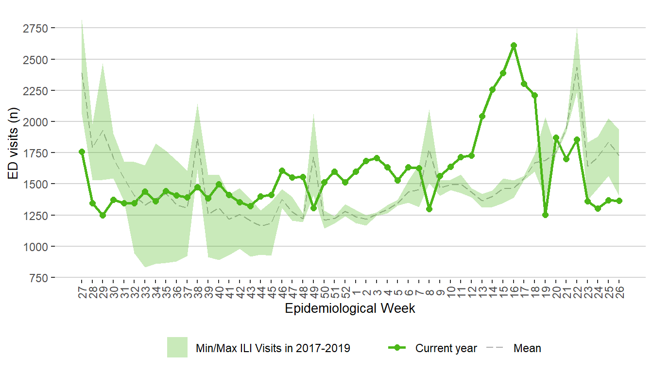 Figure 19. Weekly Respiratory Visits to Emergency Department, Manitoba, 2017 – July 1, 2023