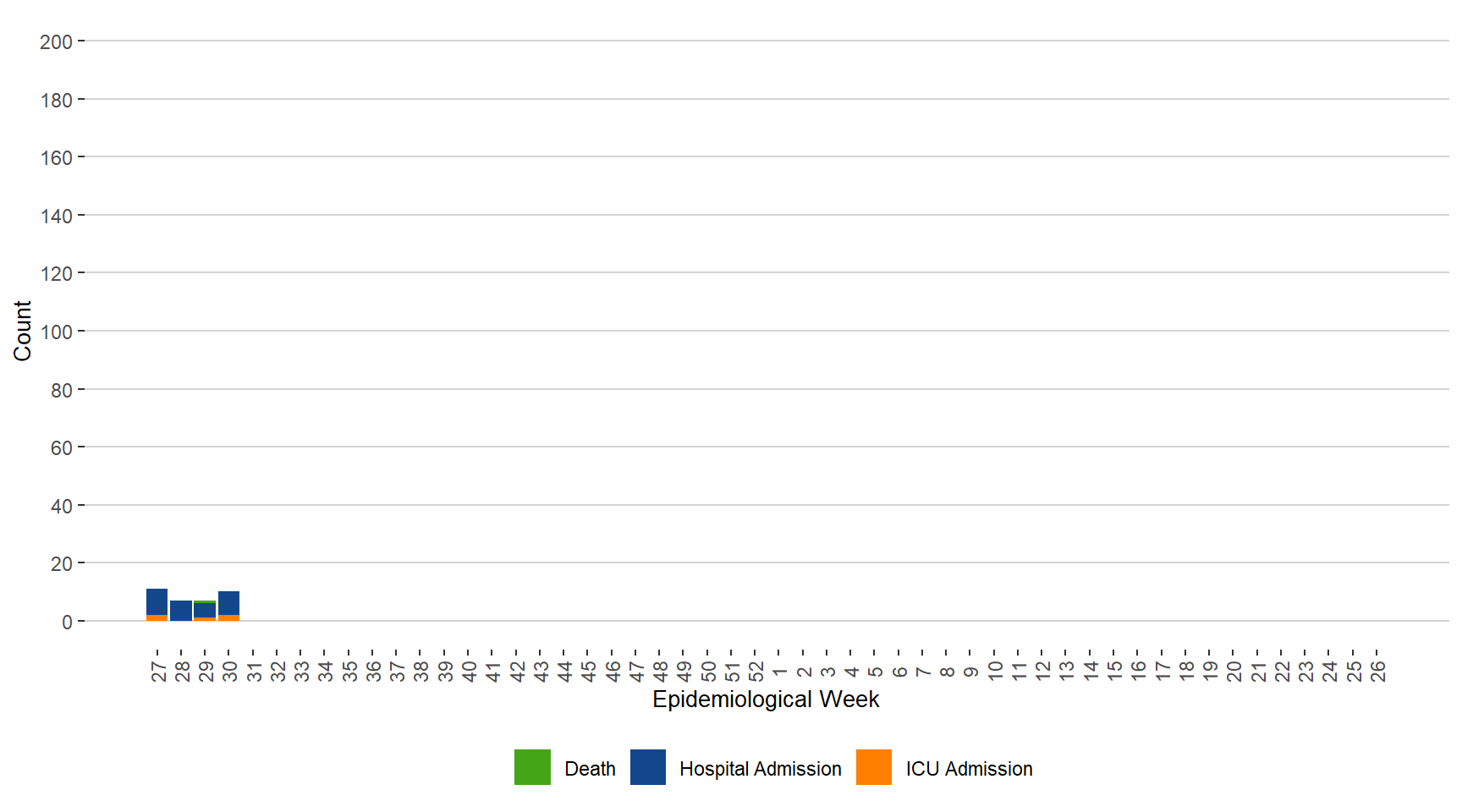Figure 5. Severe Outcomes of COVID-19 by Week of Outcome Date, Manitoba, July 2, 2023 – July 29, 2023