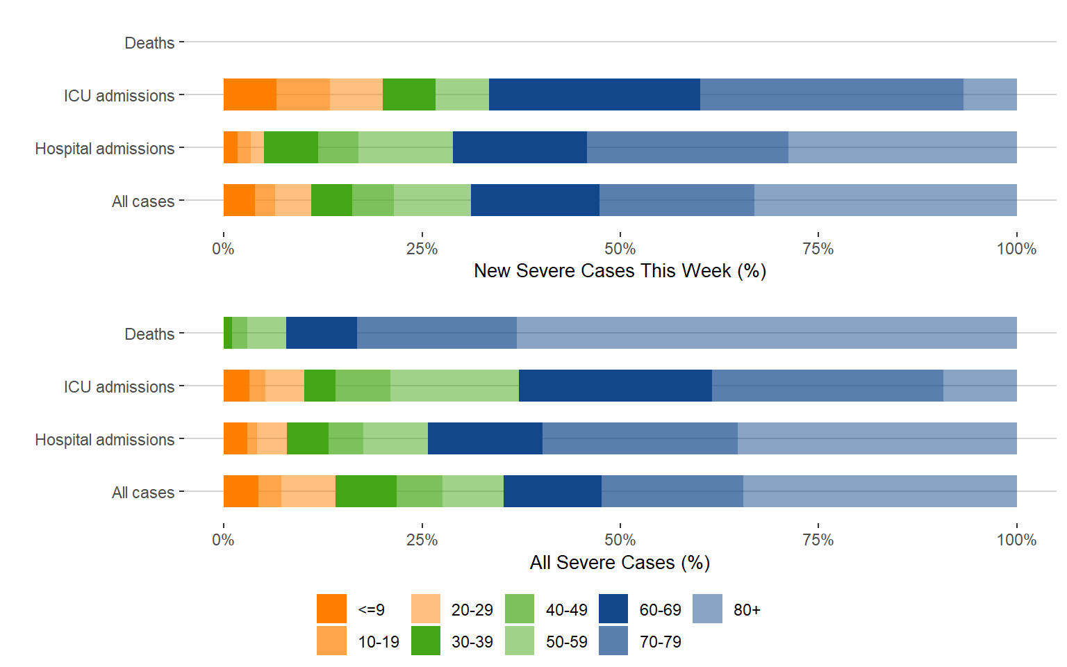 Figure 7. Age Distribution of Severe COVID-19 Cases This Week Compared to All Cases, Manitoba, July 3, 2022 – December 10, 2022