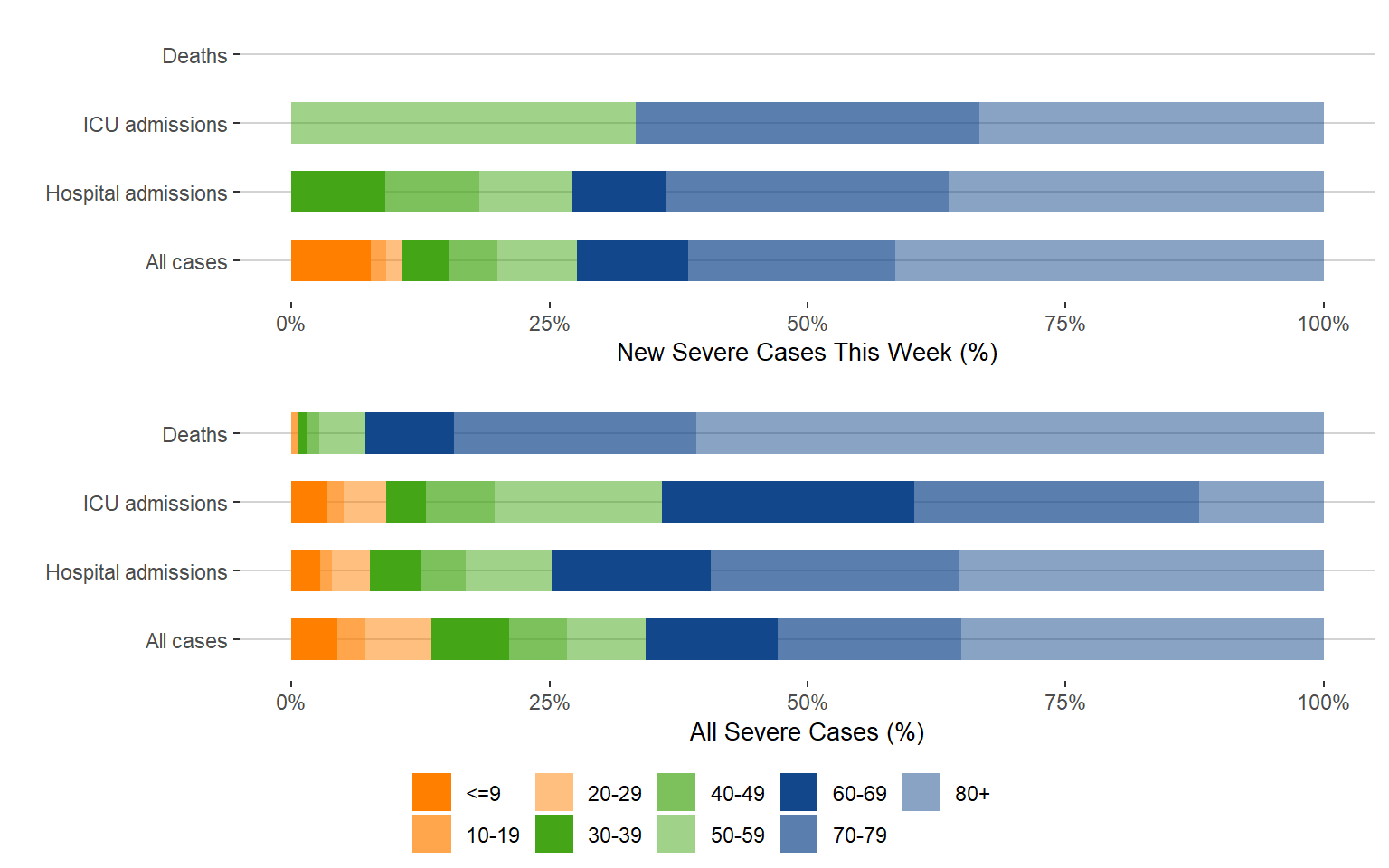 Figure 7. Age Distribution of Severe COVID-19 Cases This Week Compared to All Cases, Manitoba, July 3, 2022 – February 4, 2022