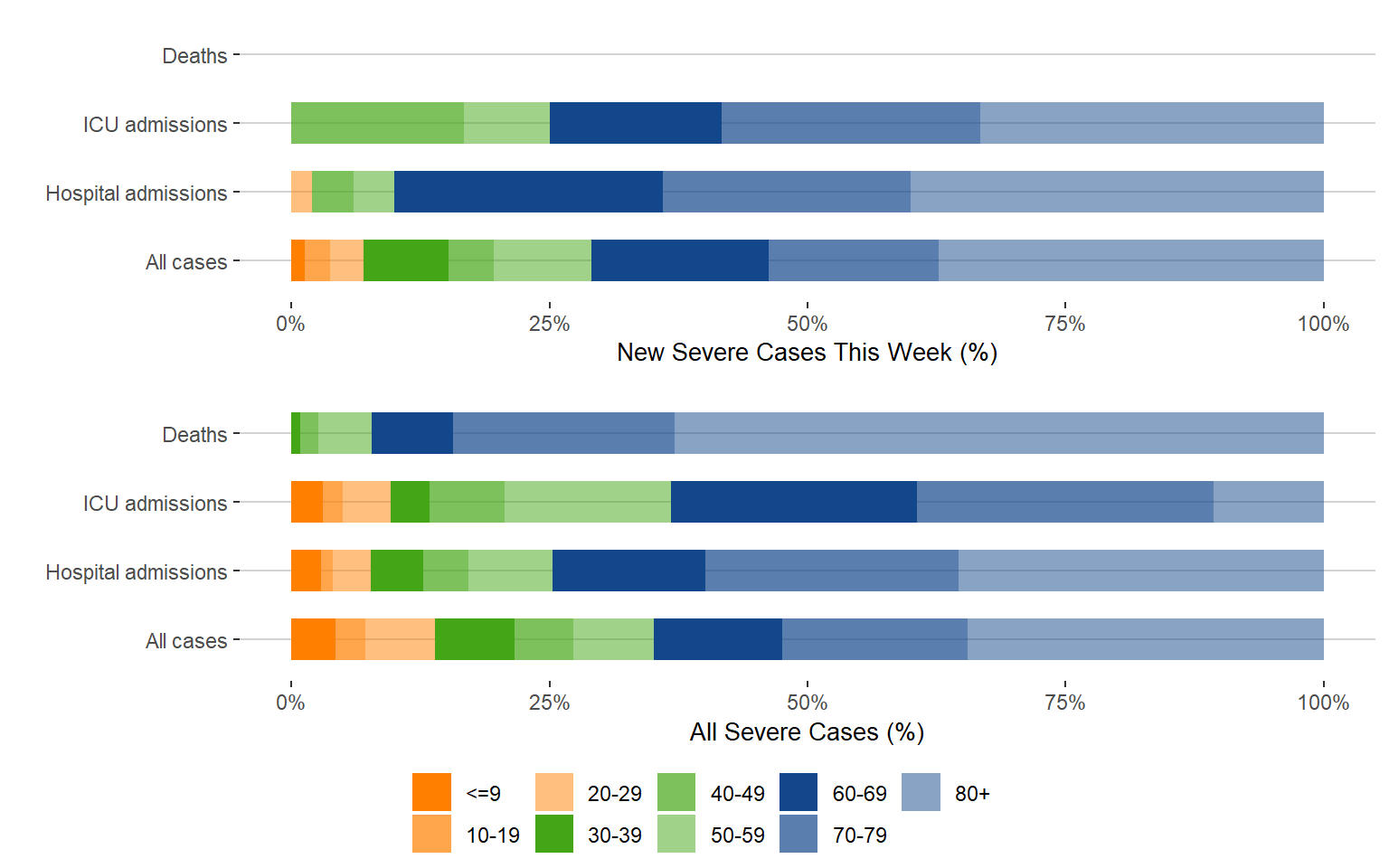 Figure 7. Age Distribution of Severe COVID-19 Cases This Week Compared to All Cases, Manitoba, July 3, 2022 – December 17, 2022