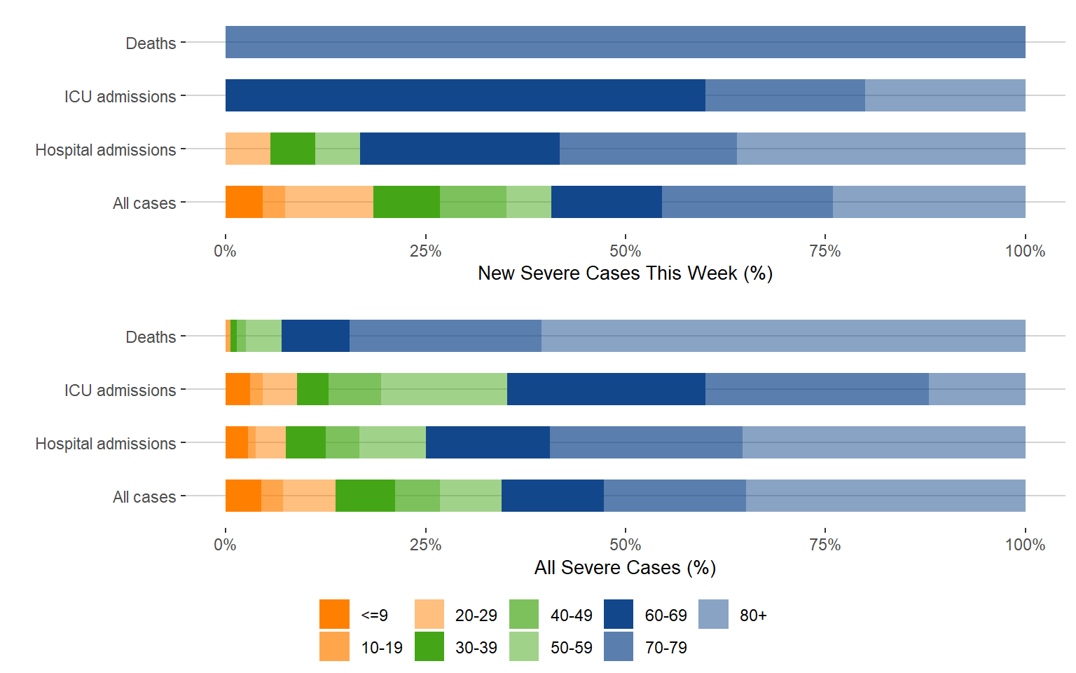 Figure 7. Age Distribution of Severe COVID-19 Cases This Week Compared to All Cases, Manitoba, July 3, 2022 – February 11, 2022