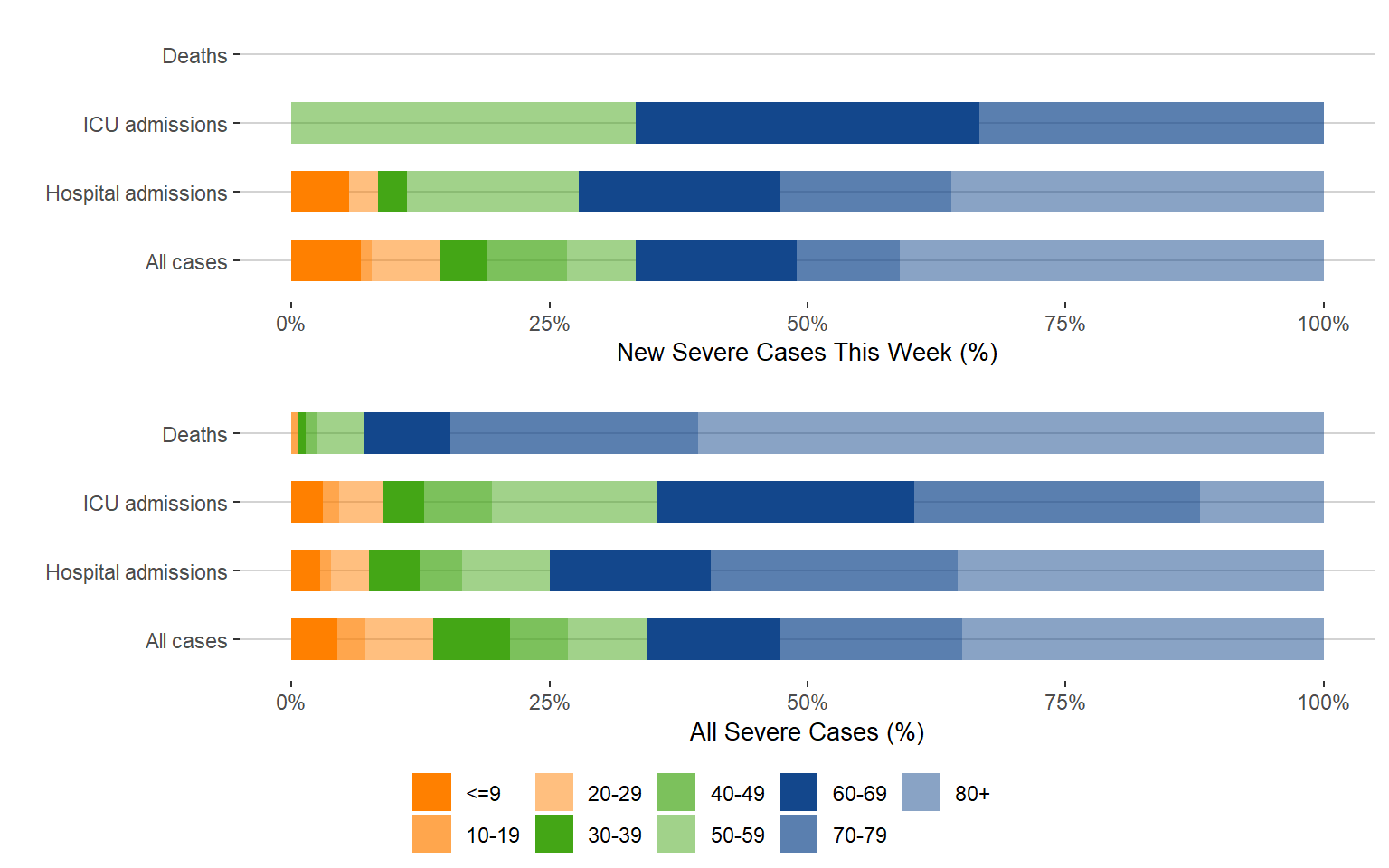 Figure 7. Age Distribution of Severe COVID-19 Cases This Week Compared to All Cases, Manitoba, July 3, 2022 – February 18, 2022