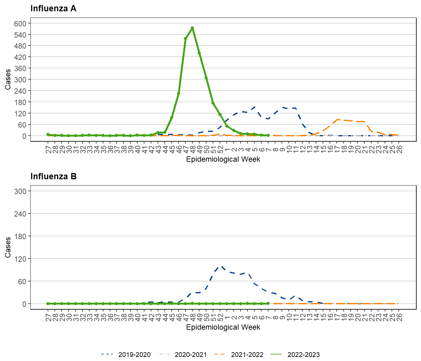 Notes: A/Darwin/6/2021-like virus is the H3N2 virus selected for the 2022/23 Northern Hemisphere Influenza vaccine. A/Wisconsin/588/2019-like virus is the recommmended H1N1 component for the 2022-2023 Northern Hemisphere influenza vaccine.