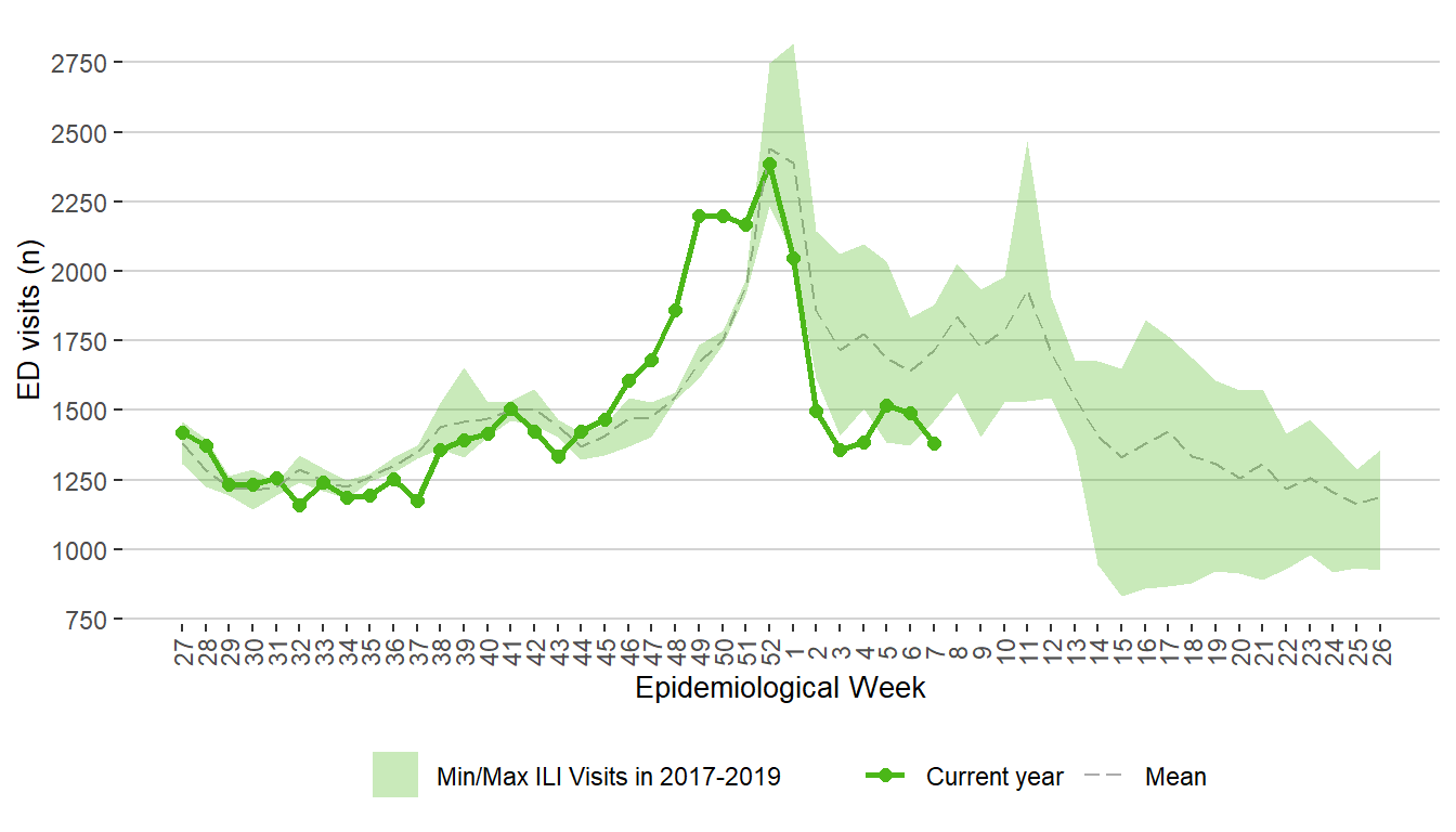 Figure 12. Weekly Respiratory Visits to Emergency Department, Manitoba, 2017 – February 17, 2024
