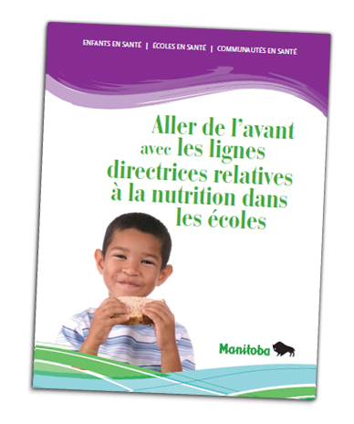 En 2006, le gouvernement du Manitoba a publié le Guide de nutrition des écoles du Manitoba : élaboration des lignes directrices et politiques. Le nouveau document intitulé Aller de l’avant avec les lignes directrices relatives à la nutrition dans les écoles a été publié en février 2015 et remplace les lignes directrices de 2006. Ce document porte sur les aliments vendus dans les écoles ou fournis par les écoles du Manitoba. Les lignes directrices sont réparties en six domaines prioritaires :