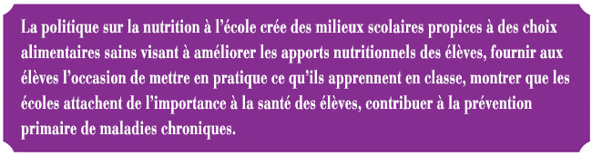L’adoption d’une approche globale à l’égard de la nutrition et de l’alimentation dans les écoles permet ce qui suit :