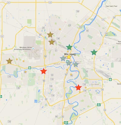 Use the clickable map above or scroll down to see the Manitoba Housing leasing office locations for the different areas of Winnipeg.