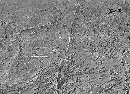 DOI draped DEM, 1.5x VE, Oblique View For a large view of this image