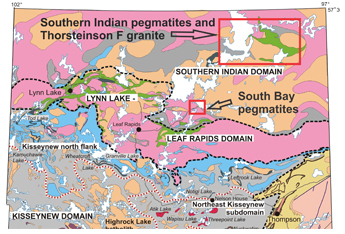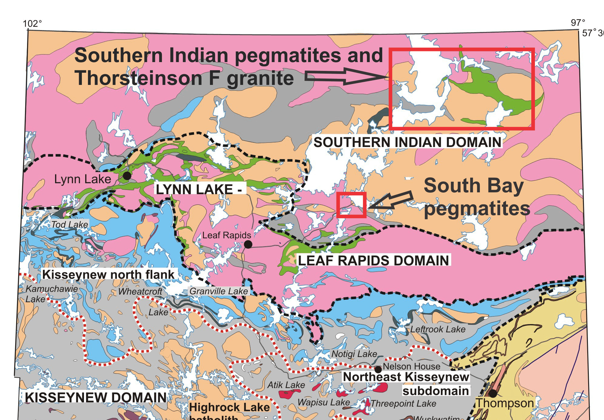 The main objective of this project is to characterize in detail the pegmatites from Southern Indian Lake (including South Bay) and investigate their potential to host rare metal element mineralization. Part of this project is also to describe and characterize the Thorsteinson fluorine granite.