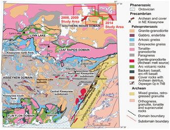 Work completed in 2008 and 2009 was focused the characterization of supracrustal rocks at Southern Indian lake (Pukatawakan Bay and Partridge Breast belts). Preliminary results of this work were published in the report of activities and as preliminary maps (see completed outputs below) but were not published in final format.
