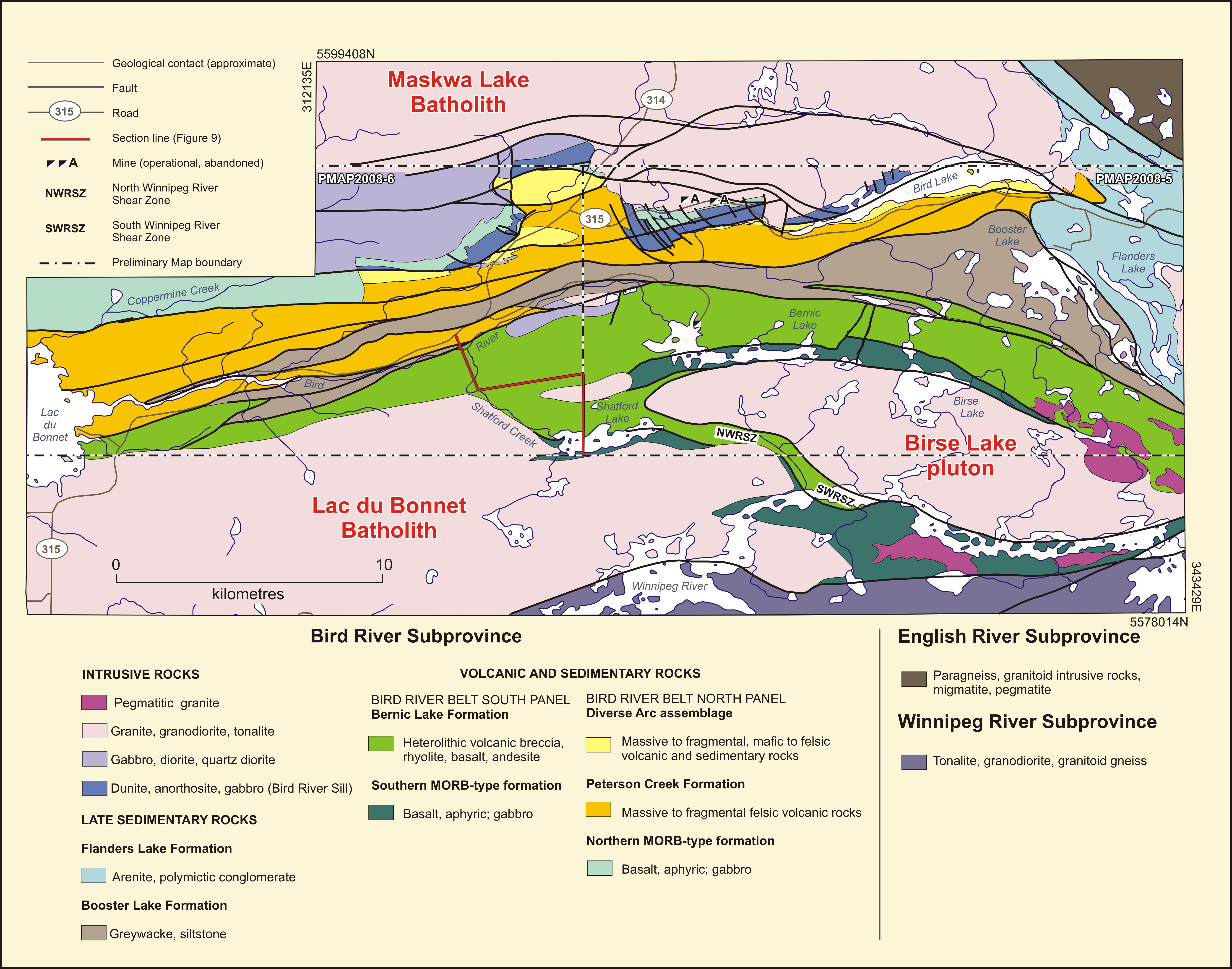 Gilbert, H.P. 2009: Bird River Belt in southeastern Manitoba – a Neoarchean volcanic arc in the western Superior Province; Manitoba Innovation, Energy and Mines, Manitoba Geological Survey, Institute on Lake Superior Geology, 55th Annual Meeting, Ely, Minnesota, May 5–10, 2009, oral presentation.