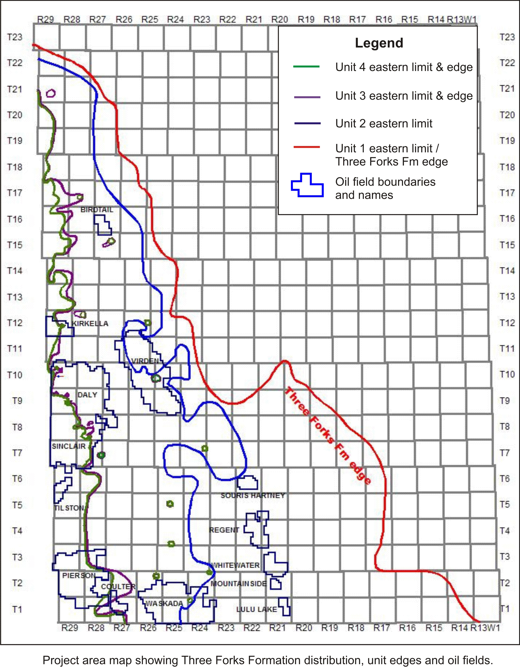 - Regional geophysical log correlations of every oil and gas well that penetrates the Three Forks Formation.