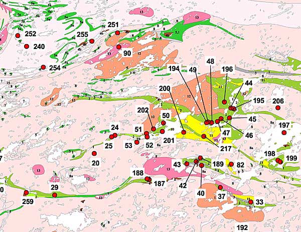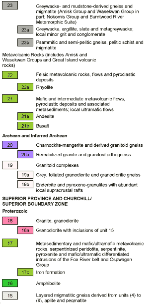 - Use the occurrence hyperlinks that are set-up on the index map in of2000-5.pdf to move between this map and the main report database. The map is modified from the Bedrock Geology of Manitoba file contained in Viljoen et al. (1999).