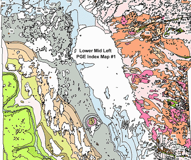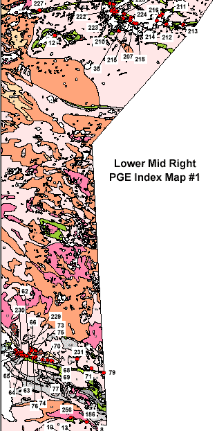 - The pge geological index map #1 shows the locations and reference identification number of all the occurrences contained in the main report database.