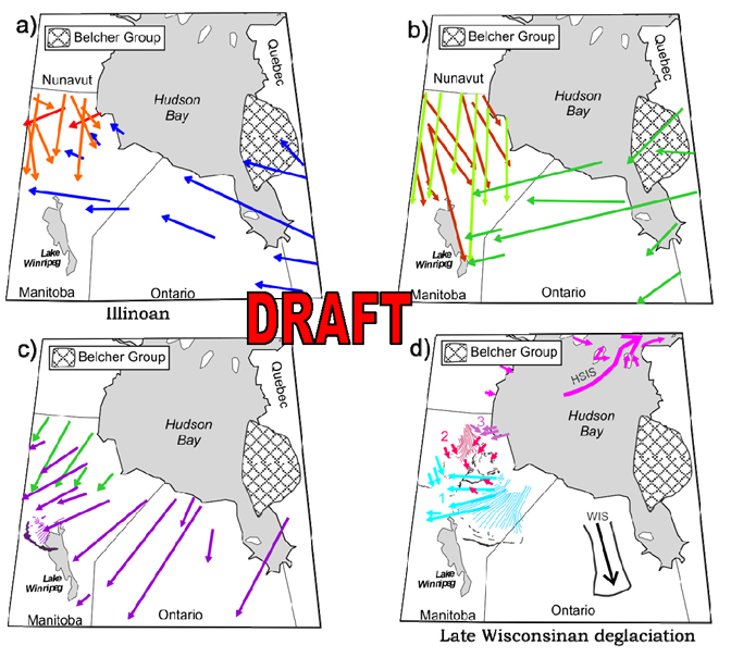 These erratics would have been eroded from their bedrock outcrops by glaciers and transported within/beneath the ice into Manitoba. These greywackes are likely sourced from the Precambrian Omarolluk Formation of the Belcher Group, in eastern Hudson Bay. These rocks were laid down in thick turbitide sequences as part of a submarine fan (Ricketts and Donaldson, 1981). There are arenaceous, pelitic, conglomerate (which includes the concretions) and transitional facies. This means that the matrix texture of each erratic can vary, and that concretions are not always present. It is always possible that some of these erratics may have come from an area where the Omarolluk Formation has since been eroded away – and not just the Belcher Islands.