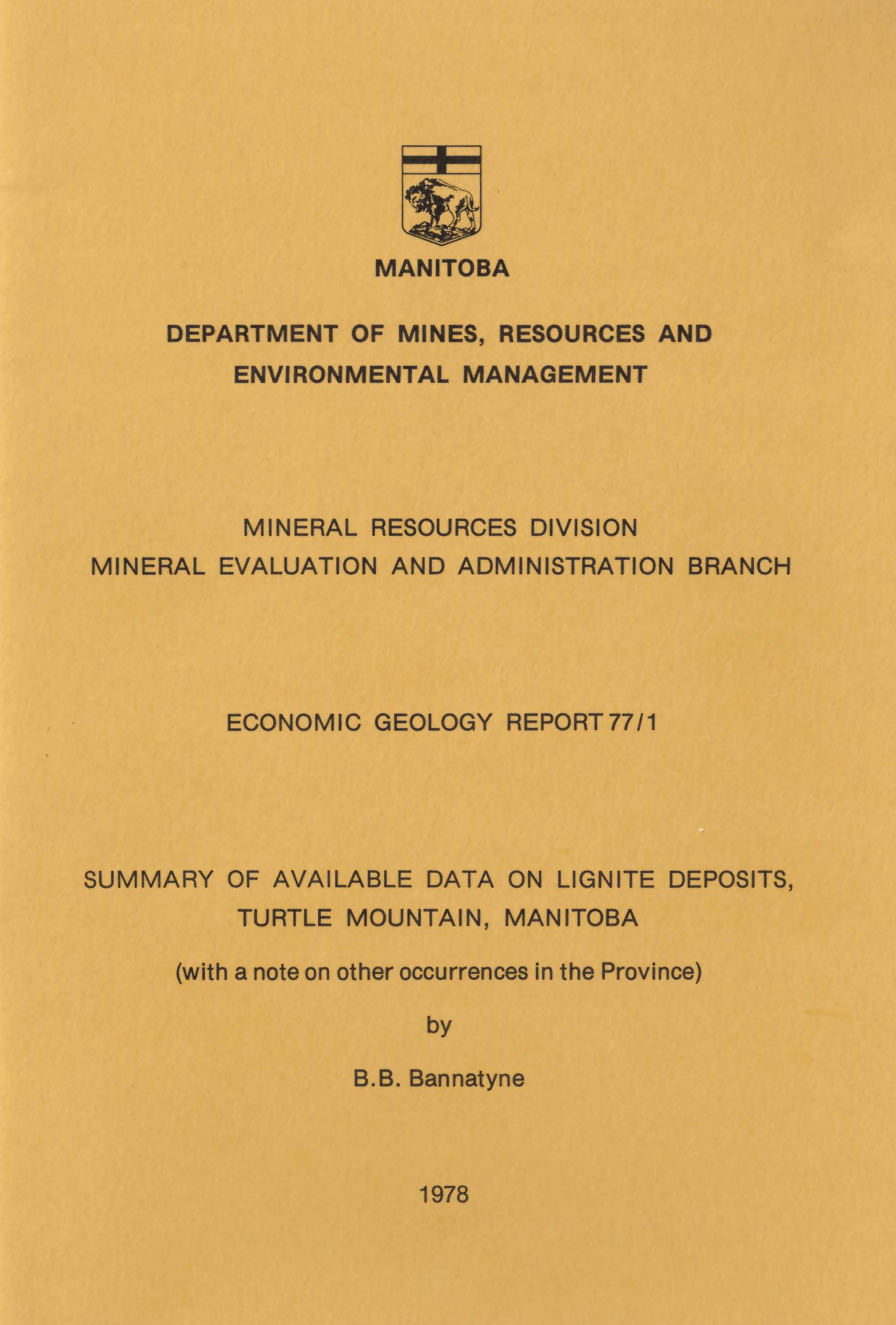 Summary of Available Data on Lignite Deposits, Turtle Mountain, Manitoba