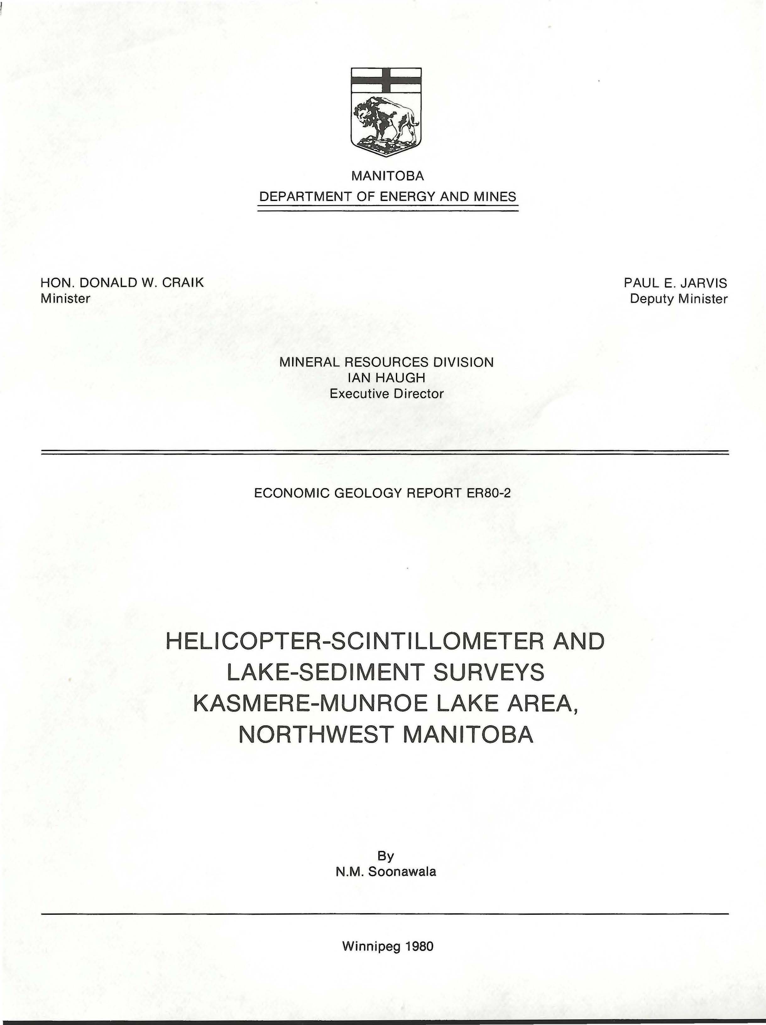 Helicopter-Scintillometer and Lake-Sediment Surveys Kasmere-Munroe Lake Area, Northwest Manitoba