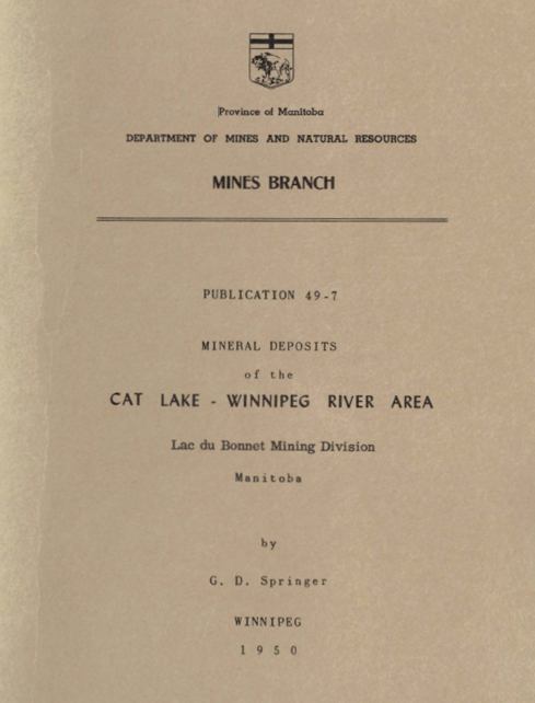 Mineral Deposits of the Cat Lake - Winnipeg River Area