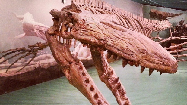 Yes. In July 2015, Bruce the Mosasaur, a gigantic scaly lizard-like sea creature, was named Manitoba's Official Provincial Fossil.